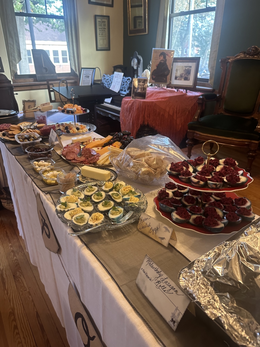 The night began with a reading of “The Raven,” delivered by Chris Mohan dressed in black tails. Savory offerings of Tell-Tale Heart salad, Annabel Lee-k and POE-tato soup, crab POE–boy sandwiches and The Raven deviled eggs provided a light supper. Lafayette gingerbread hearts with Poe’s Family Egg Nog crème anglaise or butter rum sauce satisfied the sweet tooth.