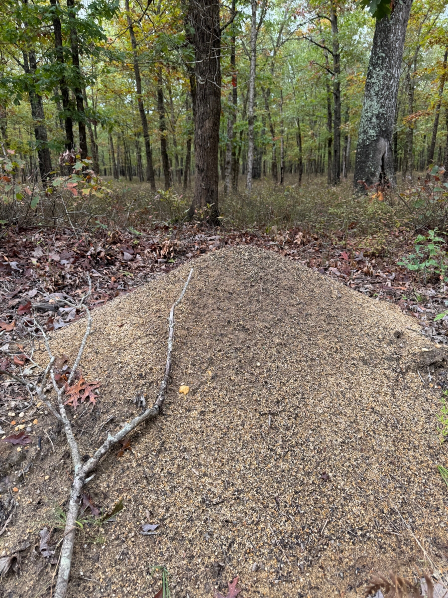 Allegheny ants are one of a species of ants that contain formic acid, utilized by birds for its fungicide, miticide, insecticide, and biocide properties. Allegheny ants build a very large mound, like this nearly two-foot-tall mound in Peaslee Wildlife Management Area, Milmay. Photo: J. Morton Galetto
