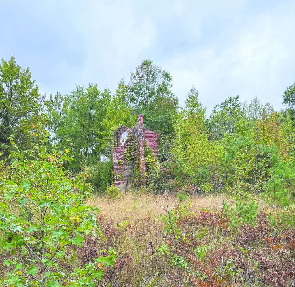 Remnants of the 600-foot Cranberry Sorting & Packing Warehouse at Whitesbog. Of three original sections, only the firewall remains. The first section was built in 1890. Fires in 1961 and