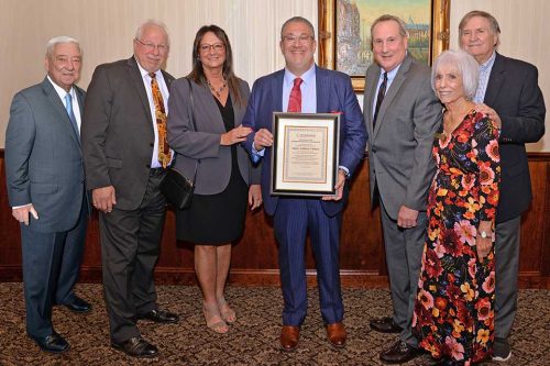 Paul Ritter, president of Cumberland Mutual Insurance, holding left end of check, recently presented a check for $10,000 to The Guidance Center, supporting its mental health services. The check was