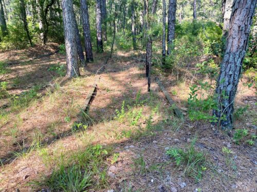 Railroad tracks from the 1870s in an area where Mary Treat collected plant species are still visible—despite the pine forest that has since taken over the site. PHOTOS: DEBORAH EIN