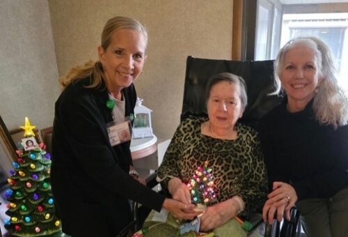 NJHealth Hospice and Palliative Care team members Julia Hertz, RN case manager, and Elizabeth Parkinson LPN help patient Janet Lesperance prepare for the season. The holidays often bring warmth, tradition,