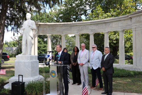 Donna Pio speaks at Veterans Appreciation Day at Millville Executive Airport. The Millville Army Airfield