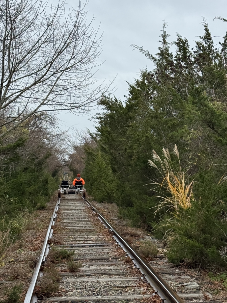 It was a cold and misty morning, a few days after Thanksgiving, when my excursion buddy and I headed to Cape May for a unique experience. A few weeks ago we shared our Woodstown Central Railway pumpkin train ride. In keeping with the rails theme we tried out a different track. As I’m sure you are aware, around the country railroad tracks have been removed and pedestrian and bicycle paths have been put in their place. In this adventure the tracks are still in play for a different recreational experience.
