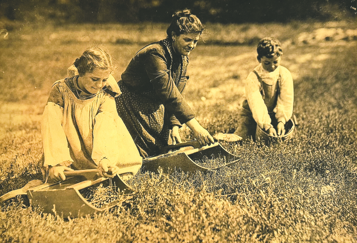 Note the workers using a cranberry scoop to “dry harvest.” The workforce included children until 1938 when the Fair Labor Standards Act placed limitations on child labor. Photo: Whitesbog Museum