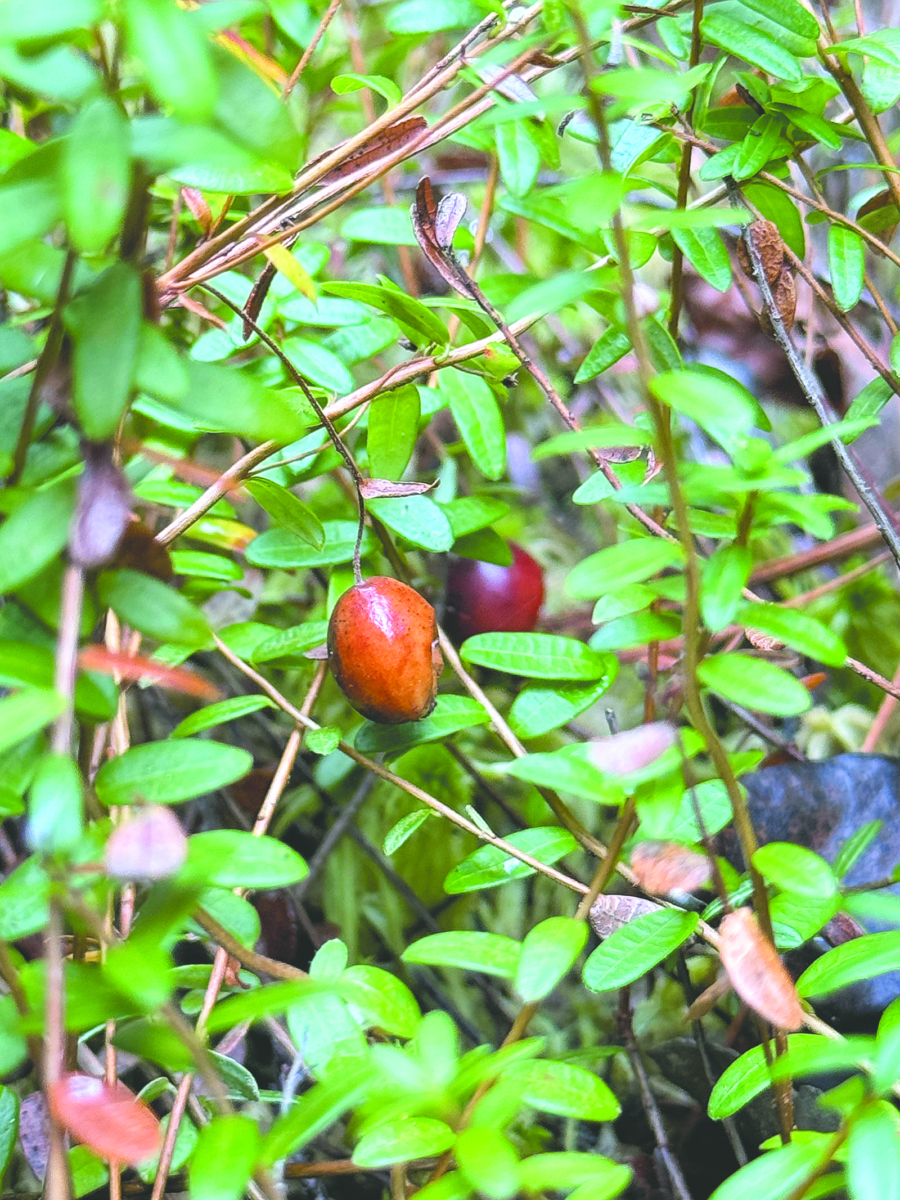 Wild cranberry vines grow in the wooded areas of Whitesbog Village. Commercial berries are harvested September through November.