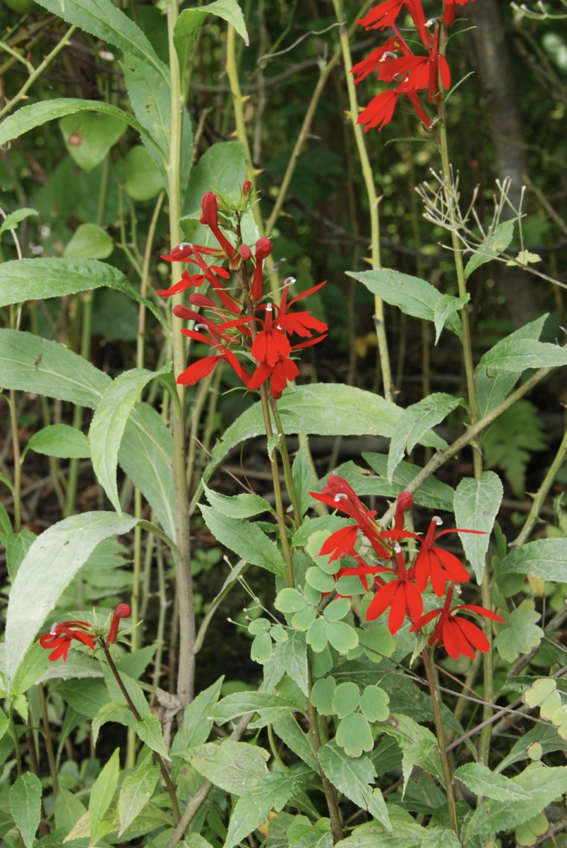 When patches of cardinal flower have multiple plants it can be seen at great distances.