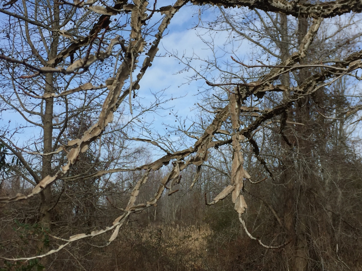 The sweetgum is often a pioneer in deforested patches of ground along the Delaware Bayshore, which is often previously farmed land. This is true of other coastal areas, especially if they are sheltered from the wind and direct sunlight is accessible. These trees can also tolerate an occasional wash of brackish water, making coastal habitats suitable. Young saplings will often sprout densely within only a few feet of one another. Ultimately the trees can’t support this density because they are a large deciduous hardwood that can exceed 100 feet in height, with a diameter of three to five feet. To raise the tree as a forestry resource—as with many species—one must give attention to spacing..