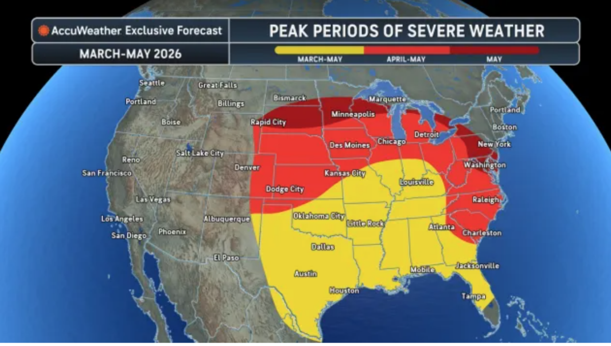 “We are leaning toward fewer tornado reports this spring compared to last year, but that does not mean the season will be quiet,” Pastelok warned. Instead, severe thunderstorms are more likely to trigger damaging winds and torrential rain compared to last year.