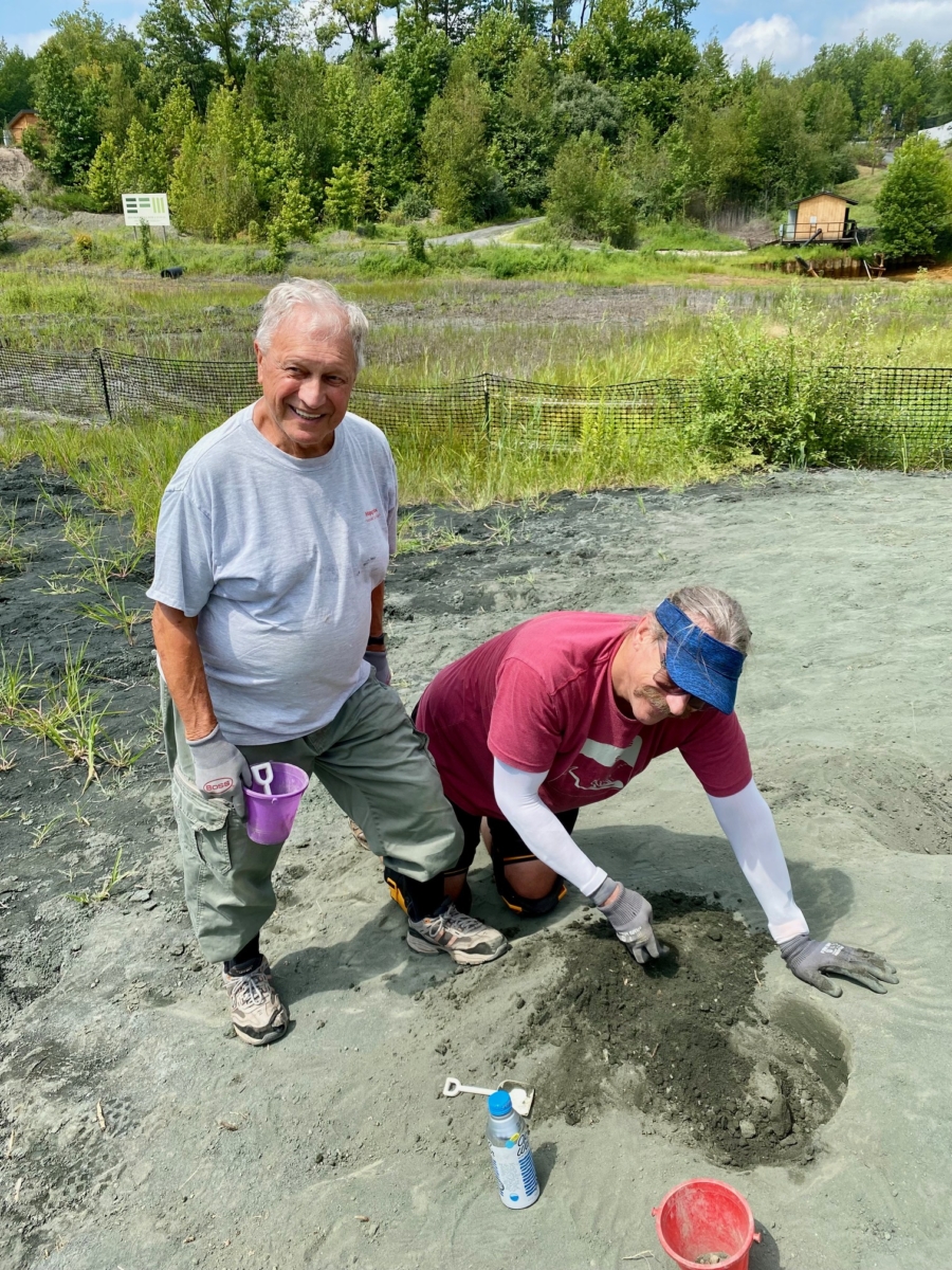 Frank Victor, 79, of Cape May County, and his son David, 56, were back at the site they explored when it was still the Inversand Company. Frank brought with him a yellowed 1982 newspaper article from the Philadelphia Inquirer that prompted his initial visit to the site. The article, titled “Good Earth of New Jersey: A Rich Legacy” had piqued his interest as he read it all those years ago. Armed with a pickax and plastic bag, father and son headed to the site to search for fossils. Frank recalls the “pit” as being very primitive, although Inversand Company was actively excavating.