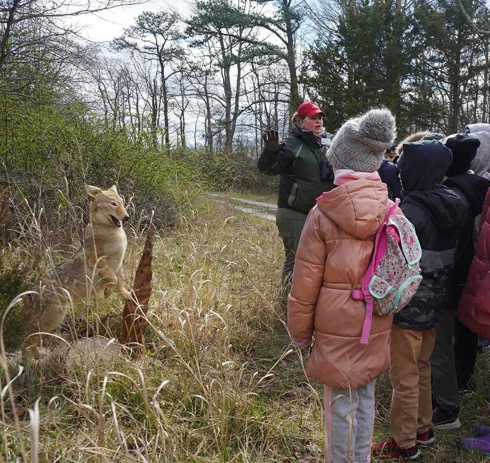 Karla Rossini, executive director of CU Maurice River, talks about local coyotes with the fourth graders. Photo: Sue Godfrey